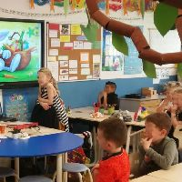 We stimuleren docenten met ons materiaal te helpen vaker, korte cultuurmomenten in de klas in te zetten. Stel niet te hoge eisen aan jezelf. Word samen met je groep nieuwsgierig naar cultuur en ontwikkel je samen. Er hoeft niet "op hoog niveau" gezongen en gemusiceerd te worden. Wij geloven in een klimaat waarin je samen, al rommelend en zoekend, plezier ervaart in cultuur en muzische vaardigheden.